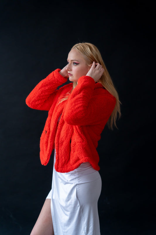 Red Long Collar Suede Coat